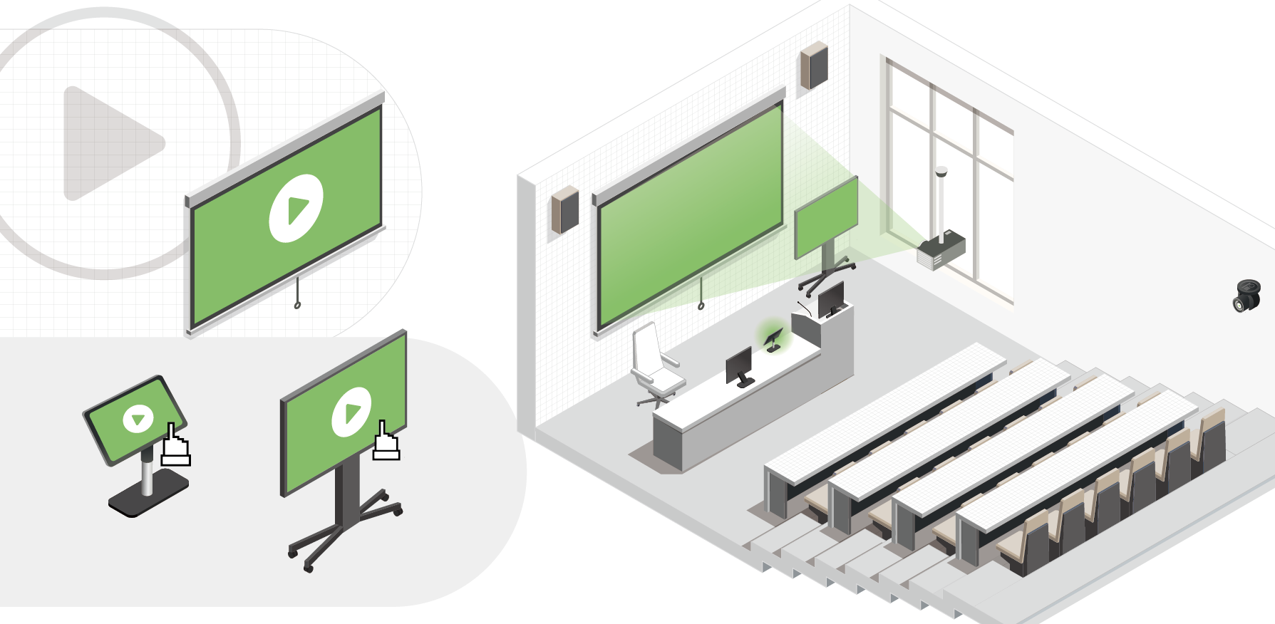 In lecture mode, the system operates in a broadcast-style workflow, where the lectern PC or instructor BYOD laptop becomes the primary source.