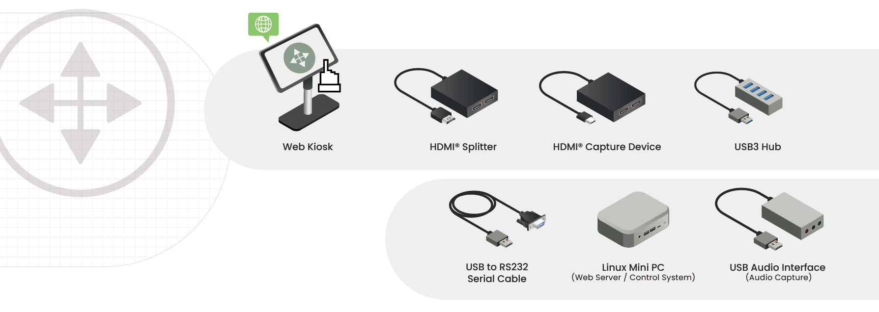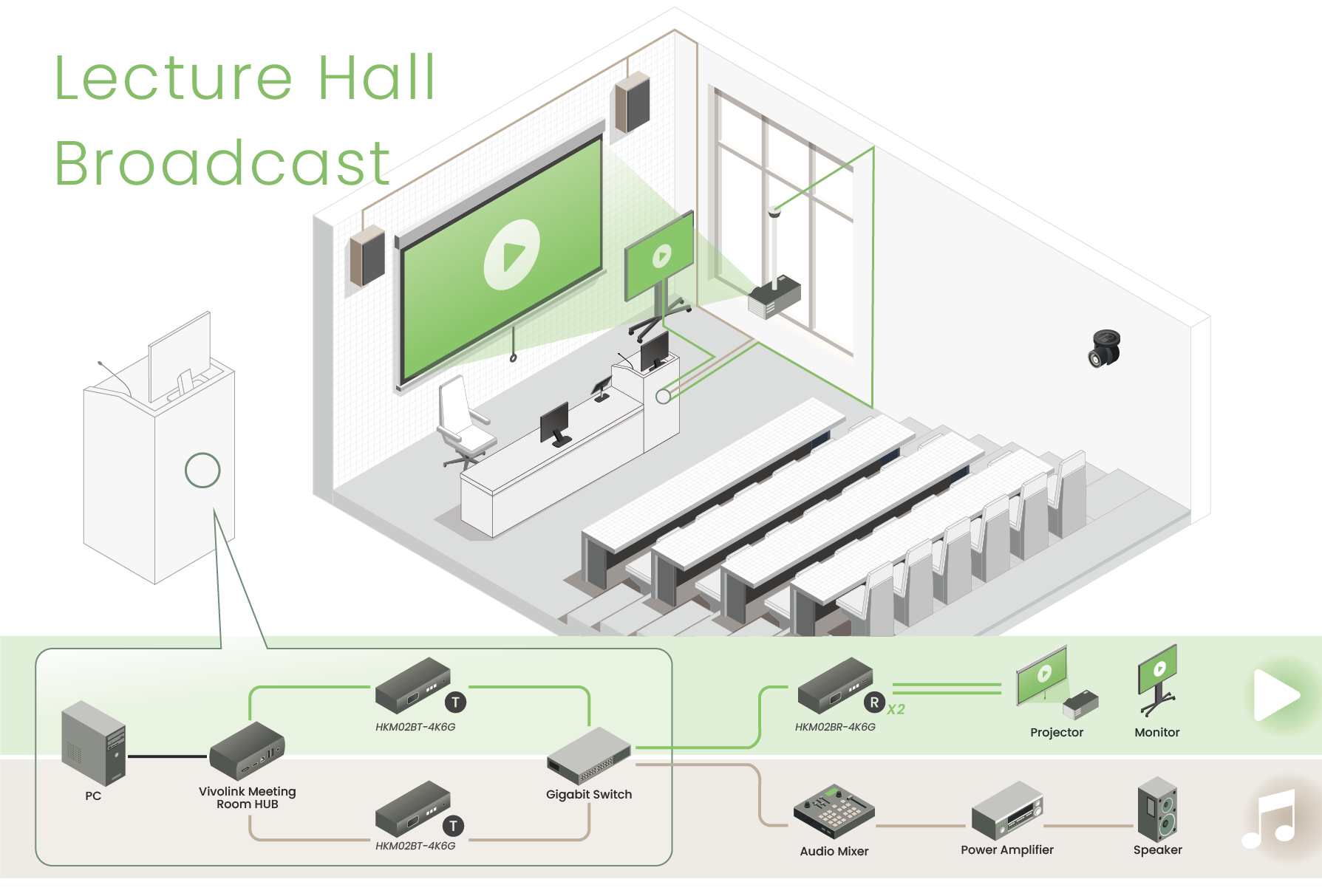 Display-End Receivers (4 units): Deployed at the projector, preview monitor, and additional displays to support mirrored or zone-based content presentation.