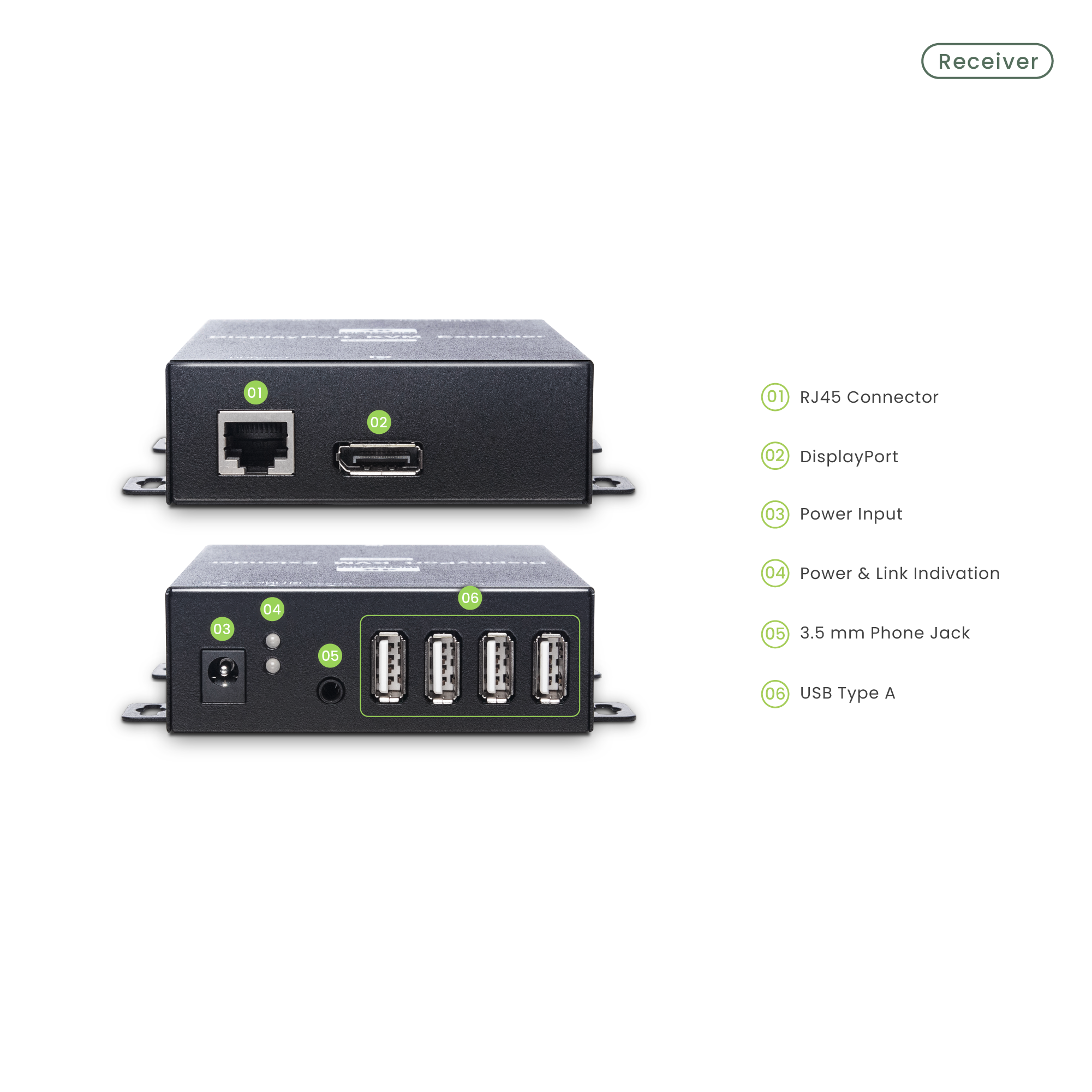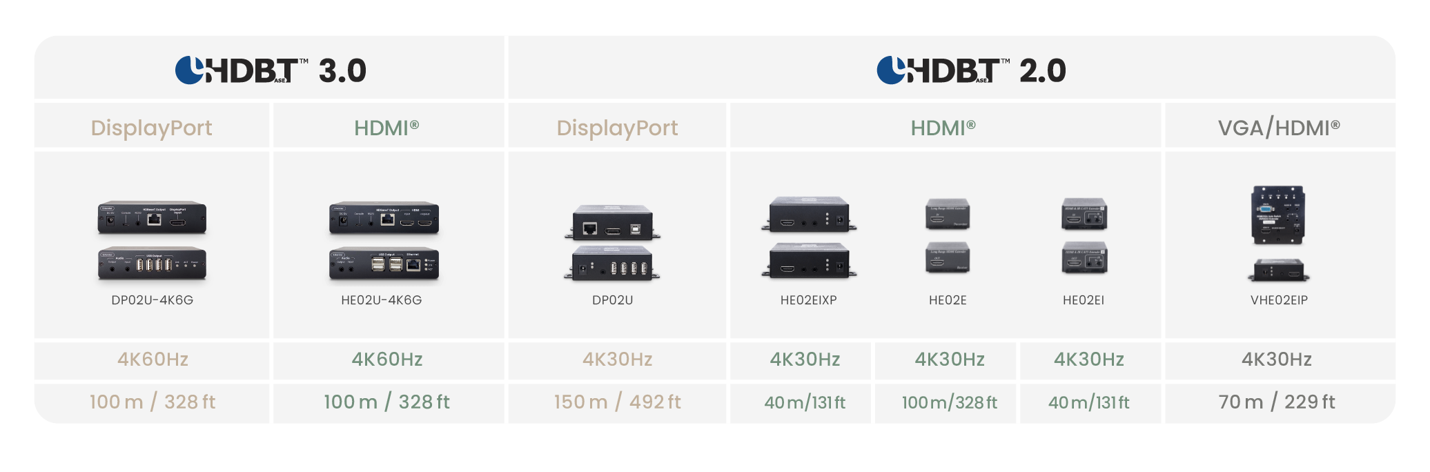 DP02U uses HDBaseT technology to provide uncompressed 4K@30Hz 4:4:4 DisplayPort video. It also supports LPCM 7.1@192KHz, Dolby TrueHD, DTS-HD MA for the audio format, which can meet the requirements for most projects.