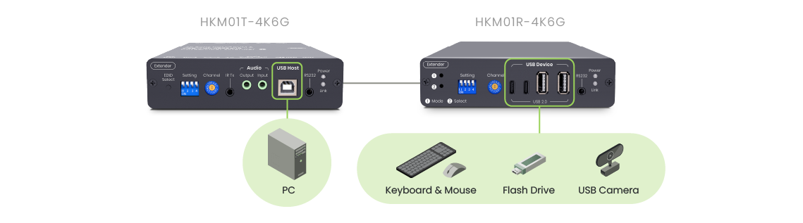 Let your setup adapt to your audio needs seamlessly. Depending on the connection of the 3.5mm, HKM01-4K6G automatically configures audio inputs and outputs. It even allows remote microphone audio to be transmitted back to the computer. Setup instructions are available in the user manual for your convenience.