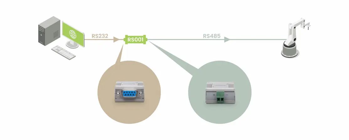 Yes. The RS001 connects directly to any standard RS232 port (such as a PC COM port) and outputs RS485 through a simple terminal block. It's bi-directional (half-duplex), so data flows both ways without additional drivers, ideal for connecting old controllers to modern networks.