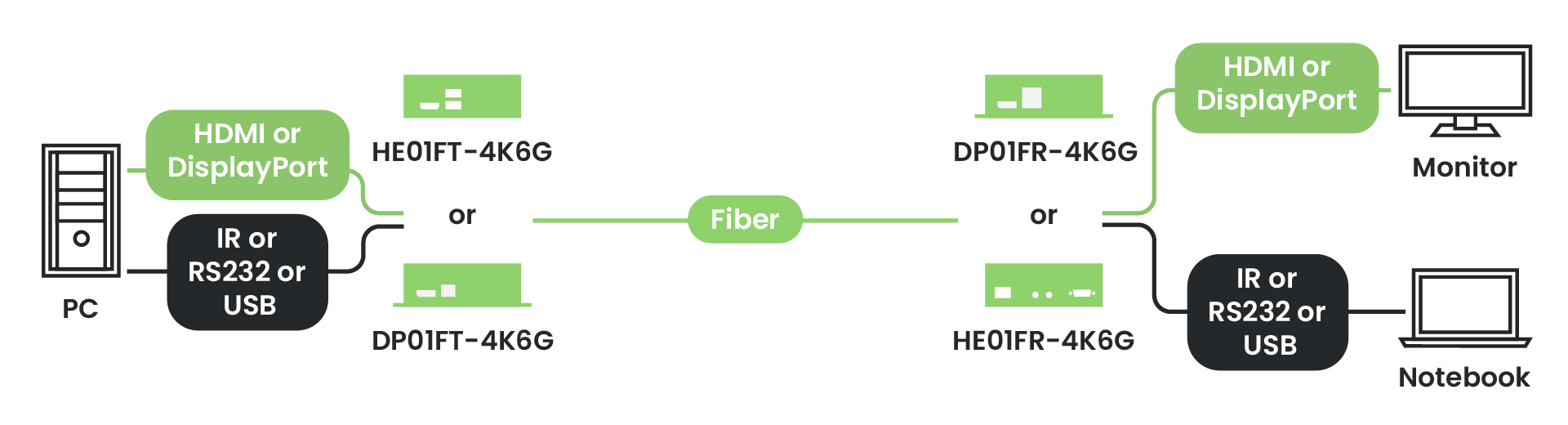 DisplayPort is increasingly used in modern IPCs and control systems. SC&T’s DP KVM extenders provide sharp 4K video and responsive USB control over long distances, making them ideal for centralized machine monitoring.Models with DisplayPort-to-HDMI conversion and DP video-only extenders are also available, ensuring compatibility across new and legacy displays.