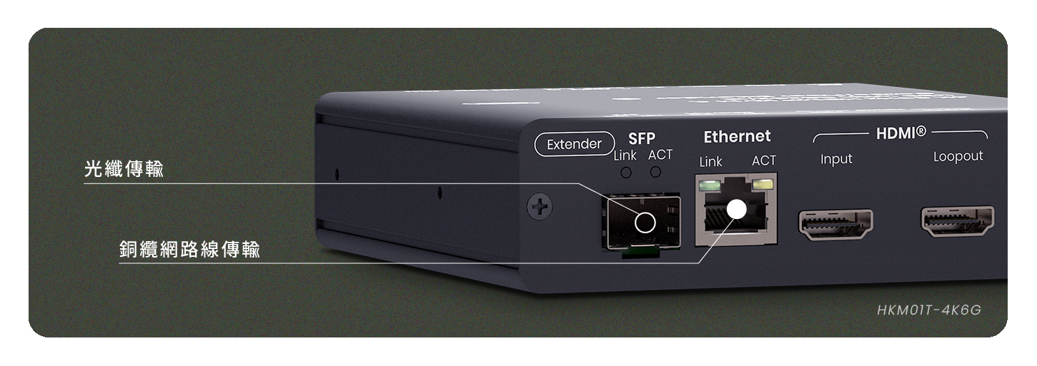因此,部分 SwiftSync 產品,例如 HKM01-4K6G,採用網路線與光纖雙介面設計,讓系統整合商能依現場條件彈性選擇最適合的傳輸方式。
