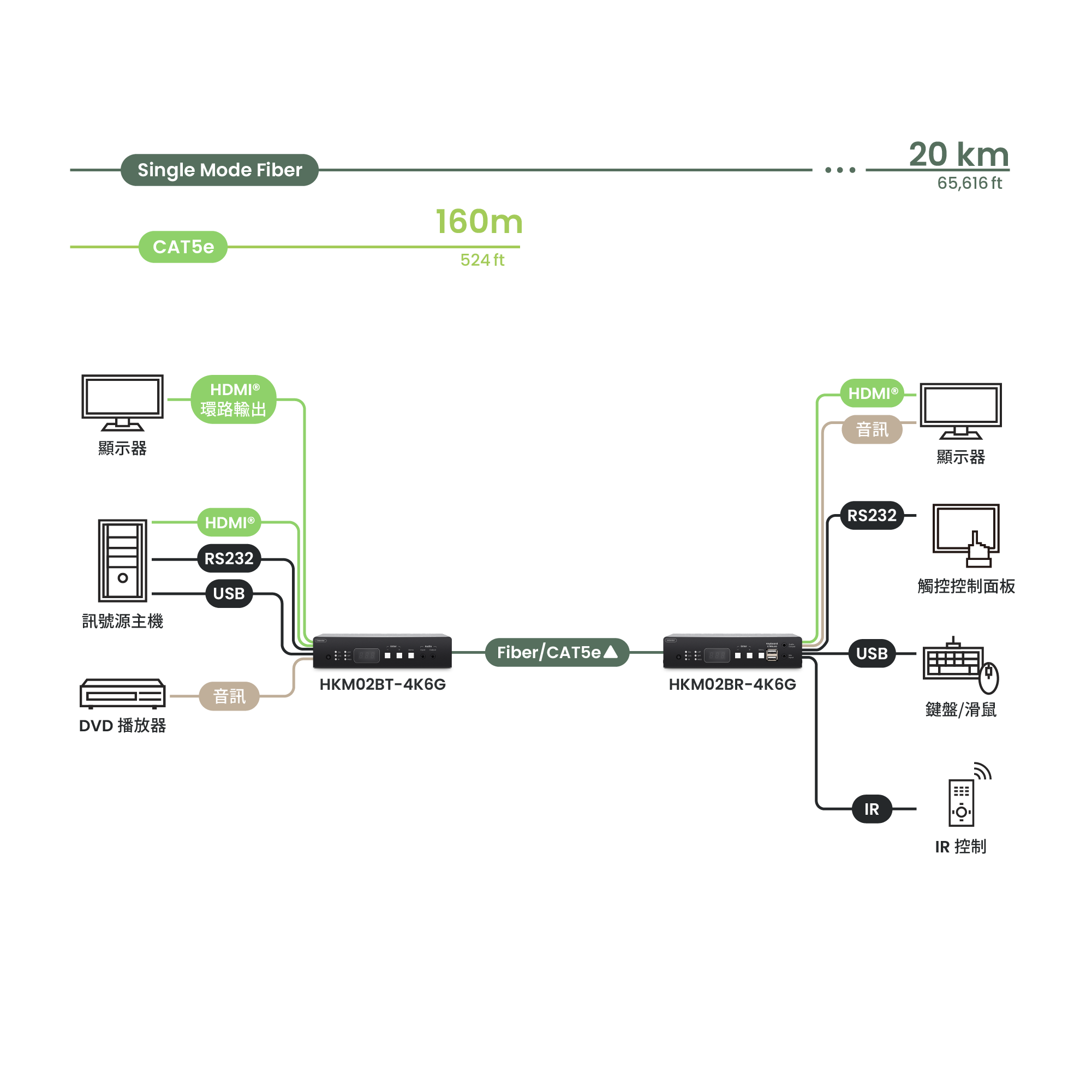 HKM02B-4K6G 是一款 4K60Hz 的高彈性 HDMI® KVM 矩陣系統,可搭配 1G 乙太網路交換器使用,能隨著專案規模靈活擴充。此系列提供 1080P、4K30Hz(HKM02B-4K) 與 4K60Hz(HKM02B-4K6G) 等版本,您可依現場需求自由配置所需的編碼器與解碼器數量,打造最符合場域的矩陣架構。 其支援 CAT5e/6 網路線與光纖兩種傳輸介質,方便整合既有佈線,適用不同的基礎架構。內建支援滑鼠漫遊功能,將游標移動跨越螢幕邊界,即可直覺地切換並控制多台電腦。HKM02B-4K6G 是應變中心、控制中心、大型安防監控等專業應用場域的理想解決方案。 注意:不同解析度版本間不相容,同一系統內不可混搭使用。