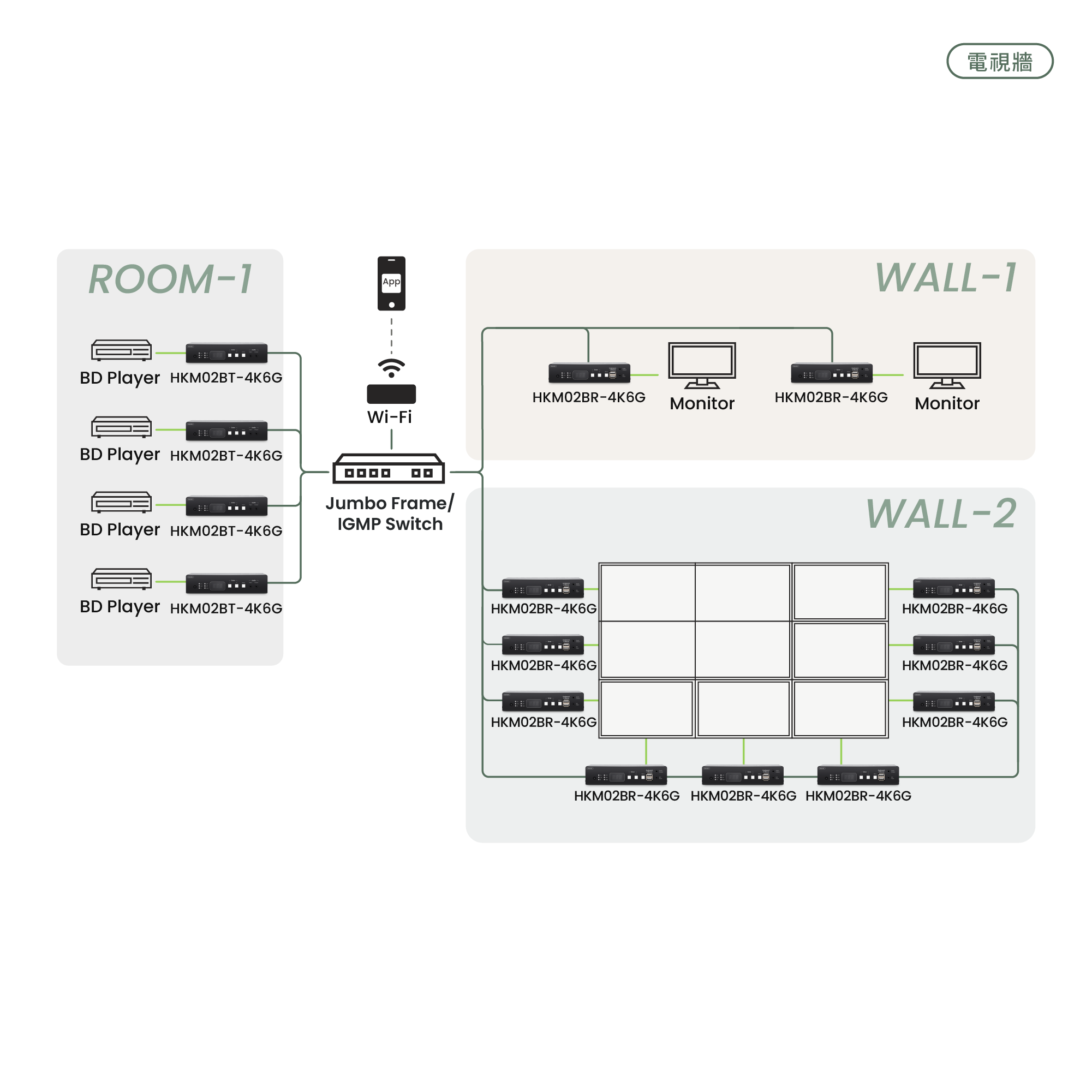 HKM02B 系列僅能搭配有 IGMP 及 Jumbo Frame 的網管型交換器。