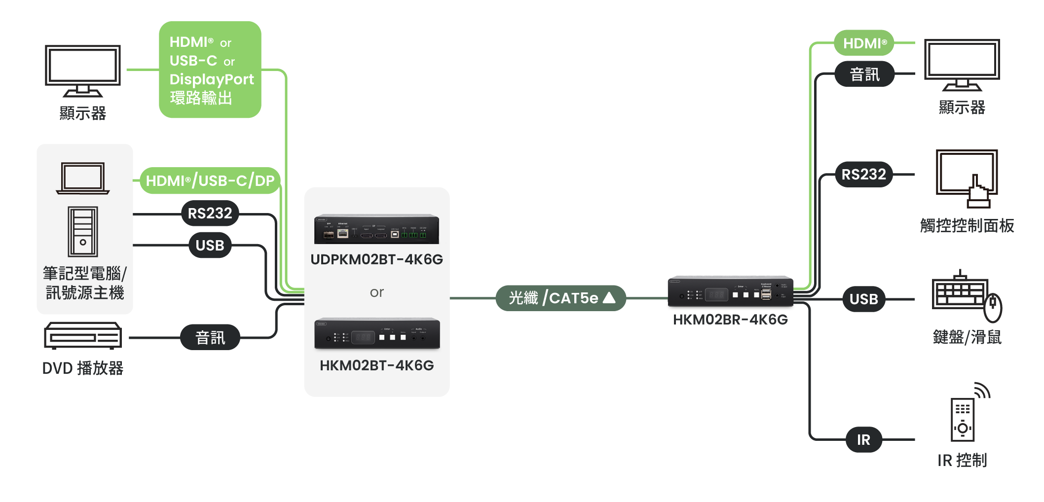 搭配 USB-C (DP) /DP 機種(UDPKM02B-4K6G)輸入,因應不同需求的應用環境。