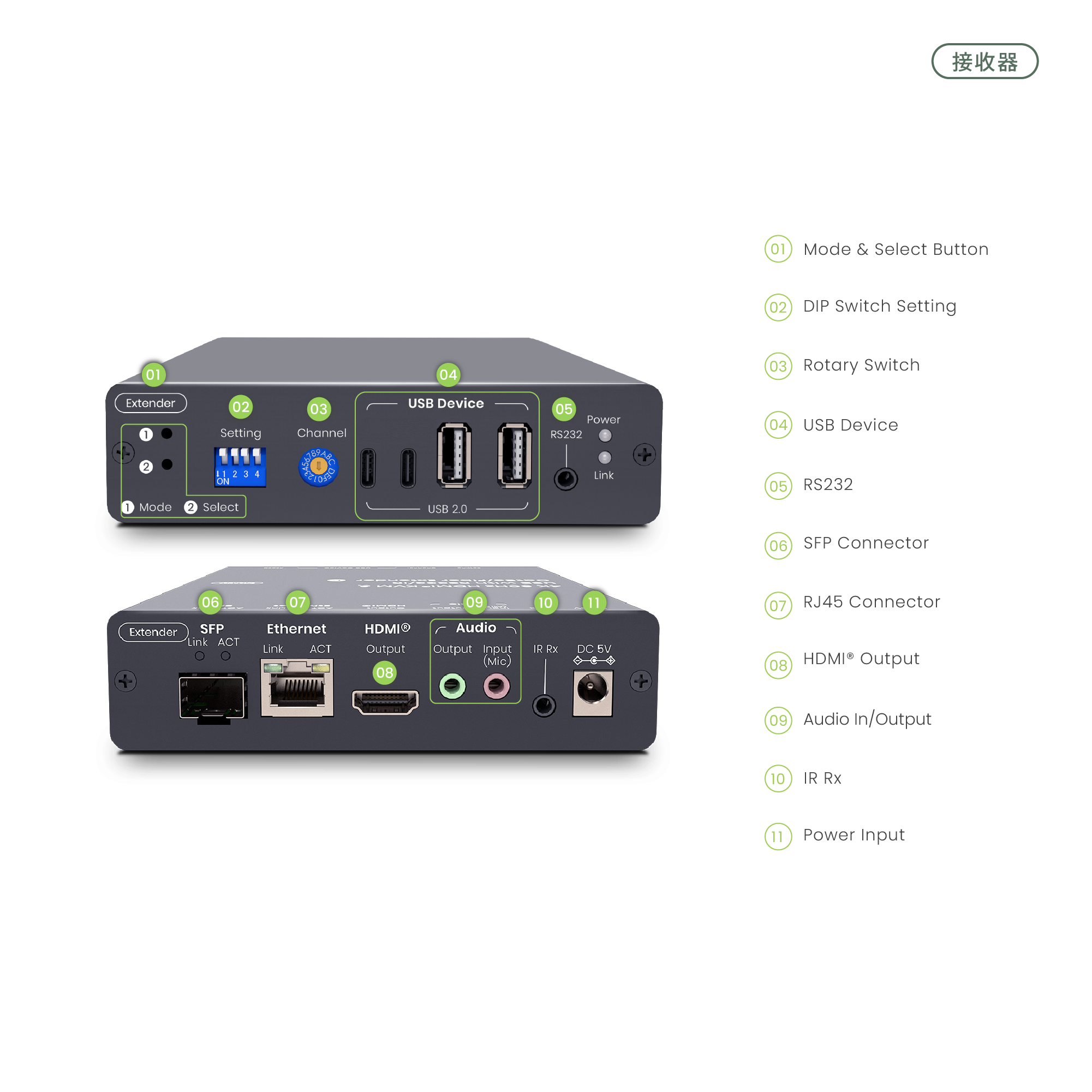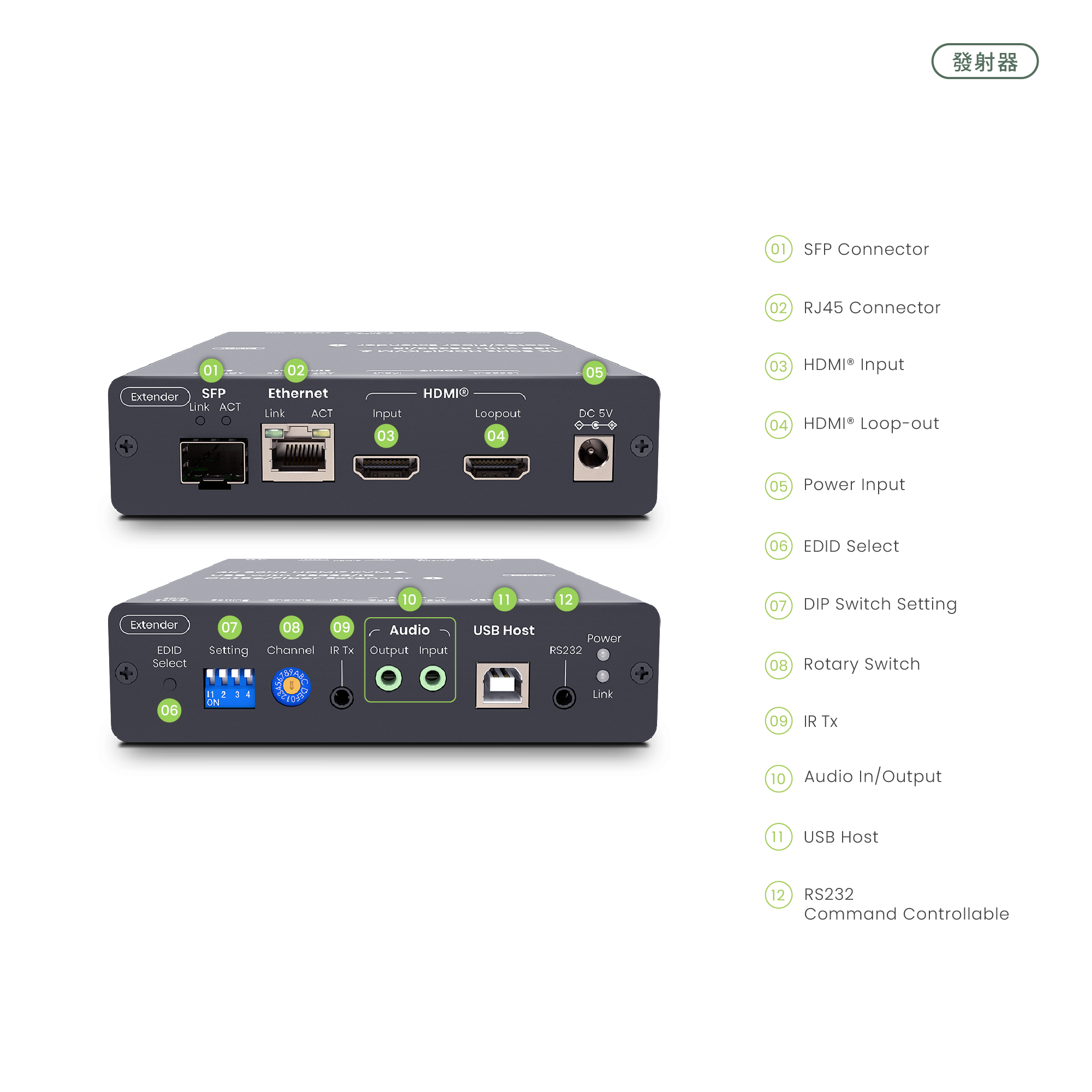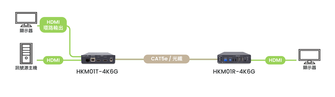 HKM01-4K6G 是一款 4K60Hz HDMI KVM 延長器,支援網路線或光纖模組兩種傳輸方式,可傳輸 USB、雙向聲訊、RS232、IR 訊號,讓您在管理設備上更加方便,同時支援 EDID 管理功能,讓您更快速設定顯示器。