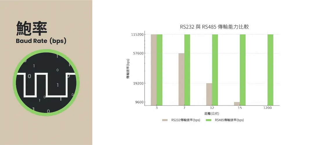RS485 可支援多設備網路(最多 32 節點),並採用差動訊號傳輸,能有效抵抗電磁干擾,非常適合工廠、自動化或智慧建築等需要穩定通訊的環境。RS232 則為單端傳輸,容易受雜訊影響。